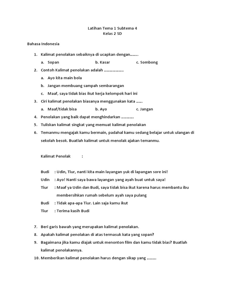 Kumpulan Materi Pelajaran Dan Contoh Soal 10 Contoh Soal Hots Kelas 2 Tema 4